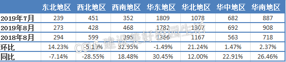 综合8月全国招标采购信息量地区统计分析图(如上图所示):西北地区环比下降5.10%,同比下降28.55%;华东地区环比下降1.49%,同比增长30.45%;华南地区环比增长2.37%,同比增长26.46%;华北地区环比增长21.24%,同比增长12.00%;华中地区环比增长1.47%,同比增长22.91%;东北地区环比增长14.23%,同比下降7.14%;西南地区环比增长32.95%,同比增长18.48%。