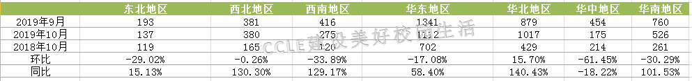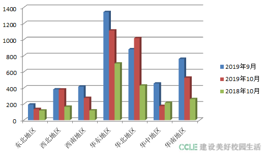 地区数据结果表明:10月份各地区招标采购信息量与去年同期相比,除华中地区外,其他地区均呈现大幅增长趋势,与上月相比,除华北地区,其他地区均有不同程度的下降。省份当中,河北、北京,广东、福建、山东等省份的招标采购信息量较高。地区数据的不同主要由来自地区经济、教育政策、教育投入等因素的影响。