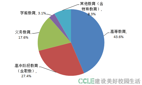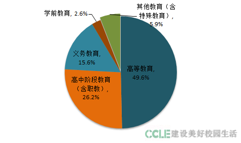 10月份招标采购信息所属领域统计情况如上图所示:学前教育占比为2.6%;义务教育占比为15.6%;高中阶段教育(含职教)占比为26.2%;高等教育占比为49.6%;其他教育(含特殊教育)占比为5.9%。