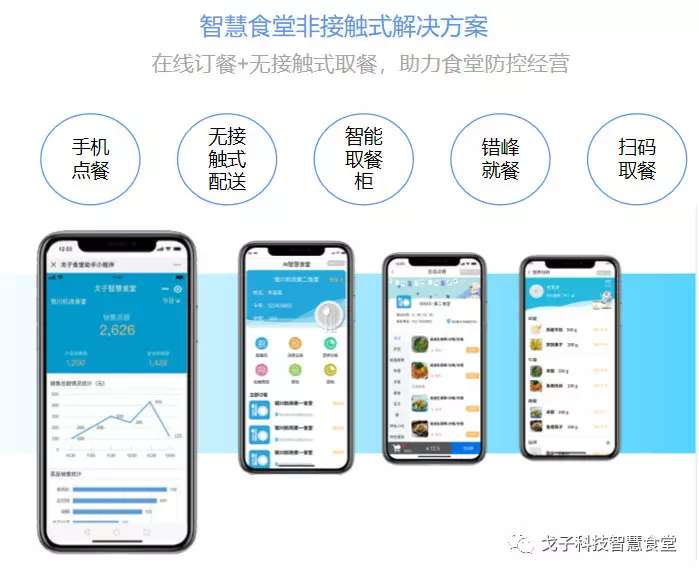 在疫情蔓延的情况下,为了尽最大努力保护就餐人员和团餐工作人员健康安全,戈子科技率先推出了“无接触餐饮解决方案”。解决方案分别针对餐前、餐中、餐后采取较为全面的防范措施。尤其在就餐方式方面,多提倡分散式、错峰式就餐,鼓励“无接触就餐、取餐”。人脸识别测温终端