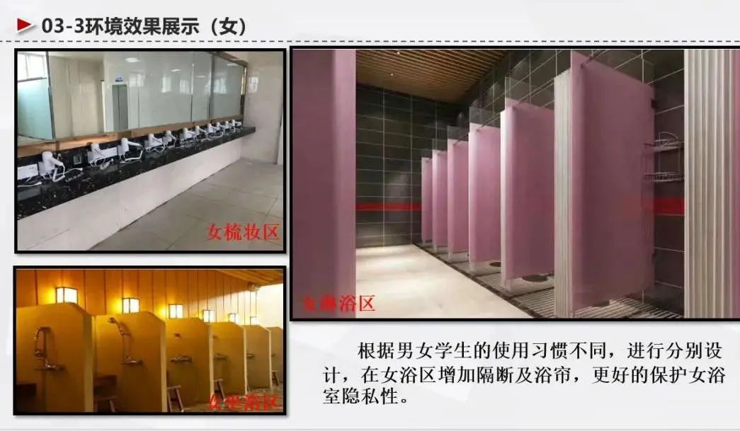 ·另外,学校对浴室也进行了升级改造,洗浴位和相关配置增加,热水淋浴和热水龙头均可插校园卡付费使用,真正实现“一卡通”。