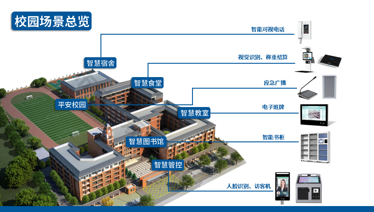 通过智能物联技术连接学校的校园监控、校园广播、校园考勤、校园访客等系统,为学校开展安全防范、事故预警、安全教育、安全管理等安全工作服务。