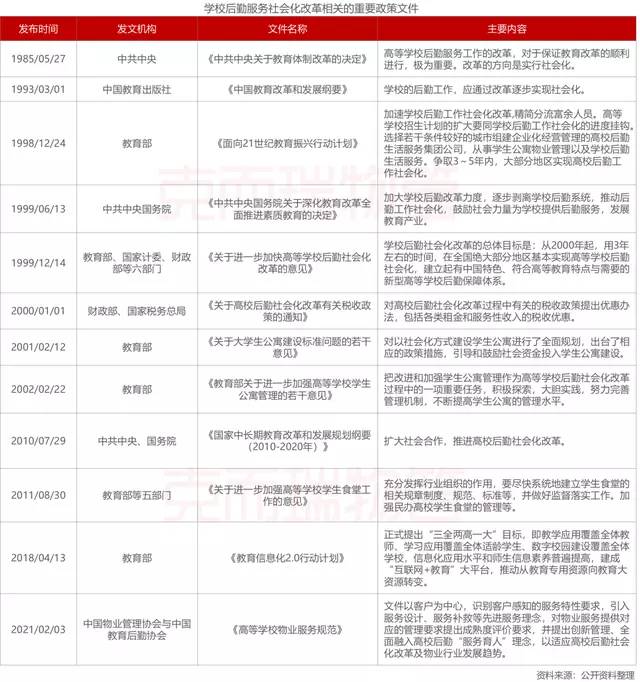 近年来,因国家政策文件的有力支持,高校后勤保障能力、运行效率和服务质量显著提高,高校后勤社会化改革成果有目共睹,这也为学校物业管理的创新发展指引了方向。
