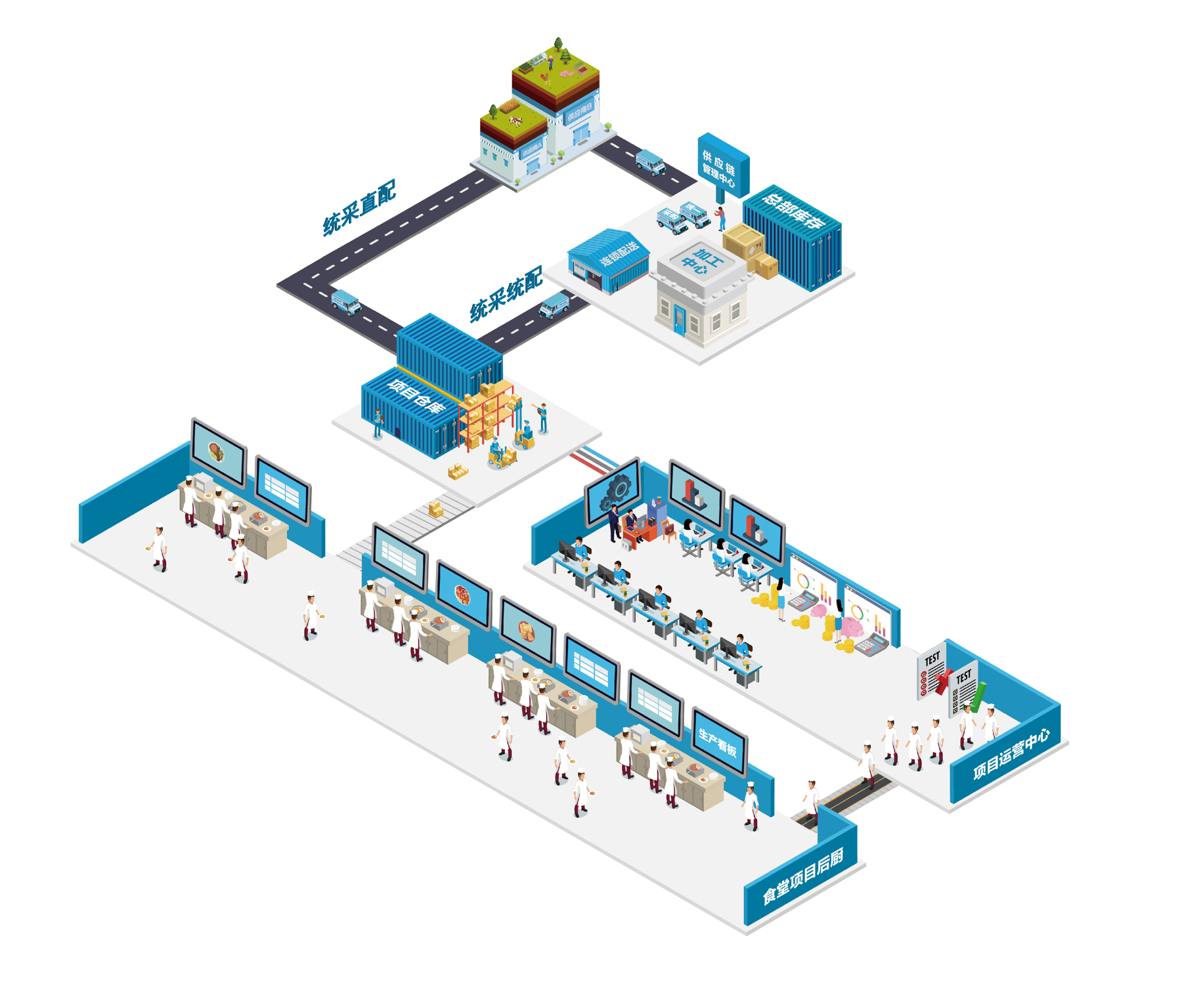 就餐者多种方式点餐,无需排队,更可随时查看营养分析报告,健康饮食;运营方多级运营、进销存管理,食安管理,提高运营效率。