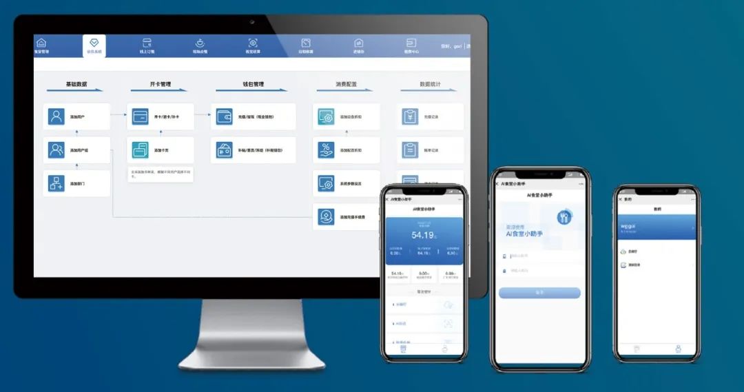 餐厅主要以微信公众号为用户端,实现数据采集、线上订餐、营养分析、在线充值、自助取餐等功能,并为食堂提供管理端进行报表分析、运营管理的平台,同时支持智能餐柜取餐,订餐菜品按时放入餐柜后,员工可通过人脸识别、扫码等方式验证信息,核实成功后餐柜开启,员工将菜品取走,致力于帮助客户减少运营成本、提高盈利效率,让食客快速便捷就餐,食堂省心省力运营。