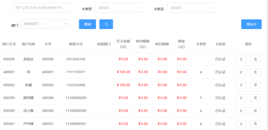 1、对用户卡务信息进行管理,充值、挂失、补卡、注销等操作。