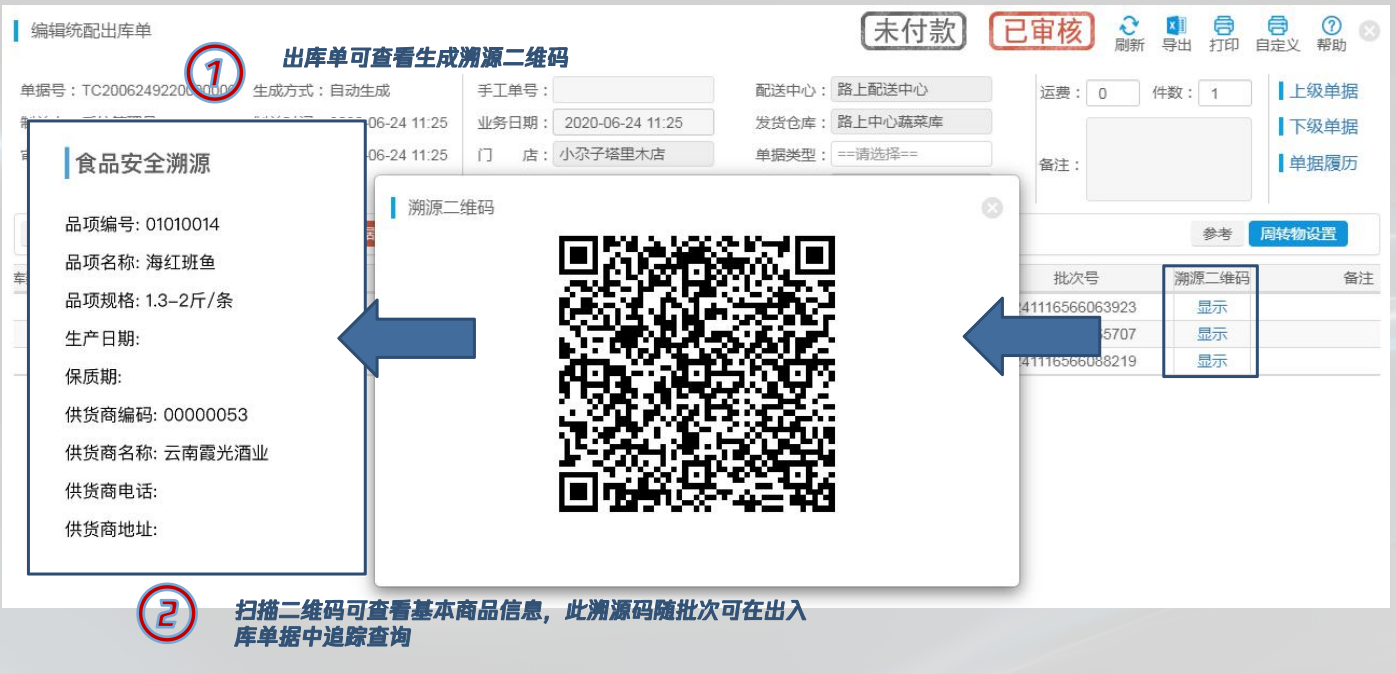 通过供应链系统的植入可以对校园食堂食材采购、入库、加工、生产、销售全链条规范管理,电子化业务流程保障数据追溯可落地。