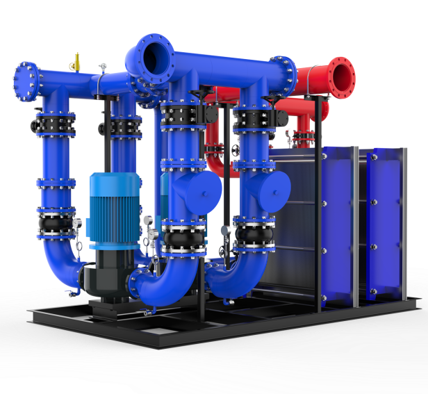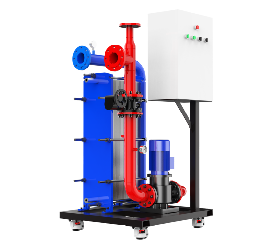 由循环泵、板式换热器、配电箱、管道、阀门、仪 表、底座(配有承重减振万向轮)等构成。