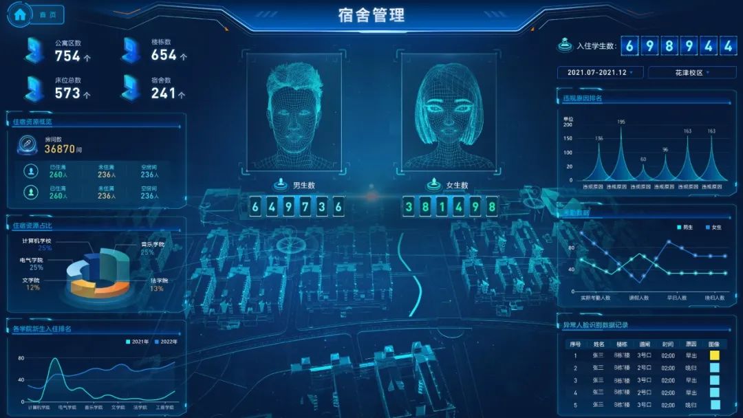 通过智能门禁及宿舍管理系统的建设,实现宿舍管理、查寝、数据统计分析、请销假管理、假期管理、学生行为分析等内容,使宿管工作能够集中管理,减轻宿管工作的难度和压力,方便教师、学生对于宿管工作的信息查询,保障学生公寓的安全。