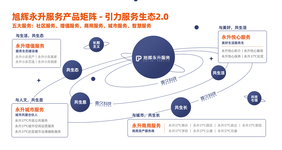 旭辉永升服务践行“平台+生态”的整体发展战略,坚持“长期主义”和“科技引领”,实现从“物”的管理到对“人”的服务升级,围绕“人”的全龄体验、提供城市全空间、全周期的综合服务。