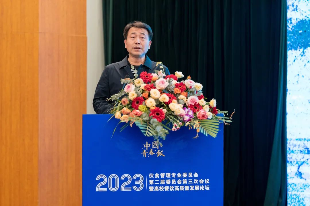 中国教育后勤协会伙食管理专业委员会副主任兼秘书长宋大我在主持会议时,代表全国伙专会对出席今天大会的领导、同仁表示感谢,并表示新的一年全国伙专会将在协会的正确领导下,继续坚持“服务教育、服务会员”的办会宗旨,以提高学校伙食管理水平、促进高质量学校饮食服务保障体系建设为目标,发挥行业协会职能,探索行业发展规律,推动行业健康发展,促进行业治理体系和治理能力现代化;希望各地伙专会和各学校在新的一年里继续奋发努力,以提升广大师生幸福感为目标,推进全国高校餐饮高质量发展。