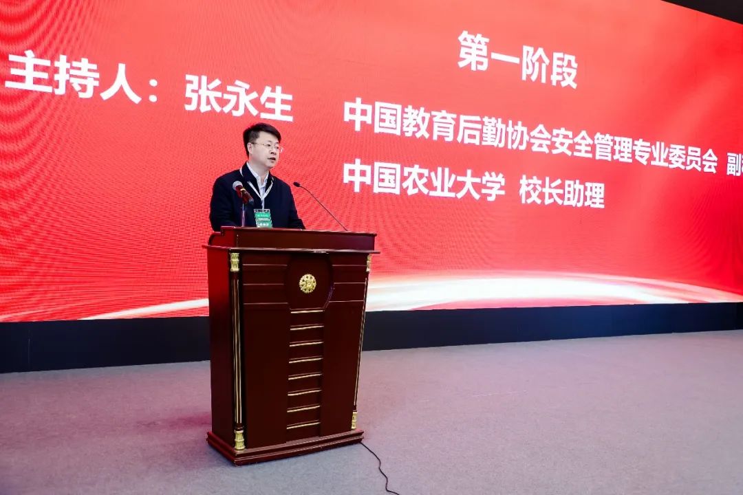 中国教育后勤协会安全管理专业委员会副主任、中国农业大学校长助理张永生,江苏省高校后勤协会安全管理专业委员会名誉主任高明分别担任大会第一阶段和第二阶段主持人。