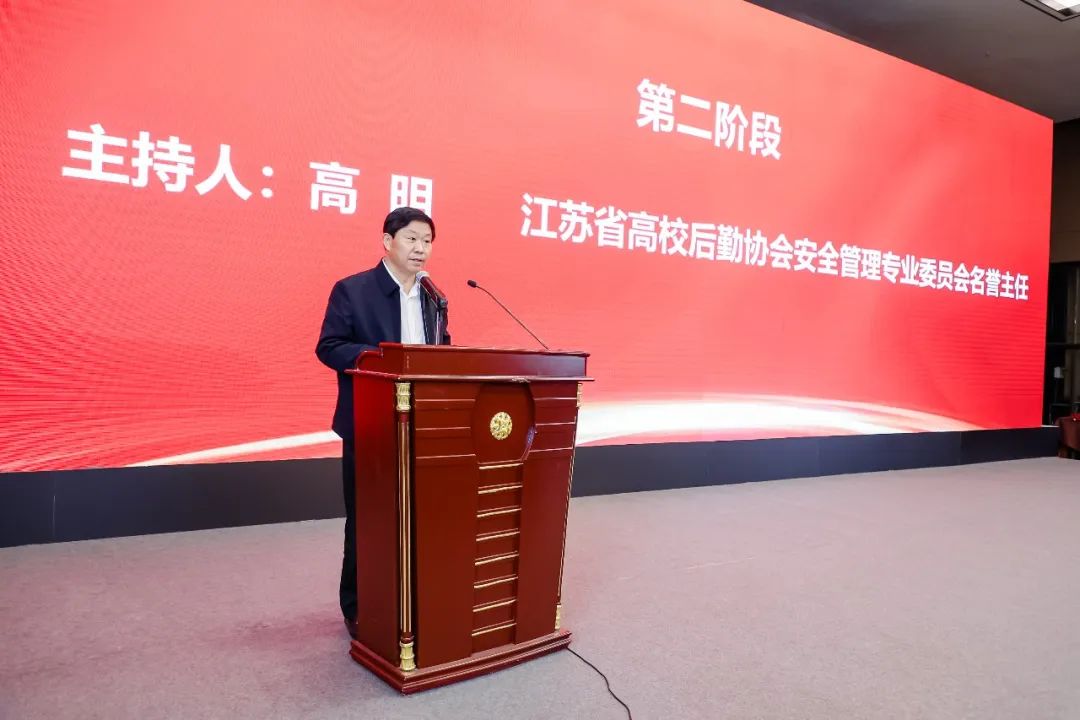 江苏省高校后勤协会安全管理专业委员会名誉主任高明在致辞中首先对本次大会的召开表示祝贺。