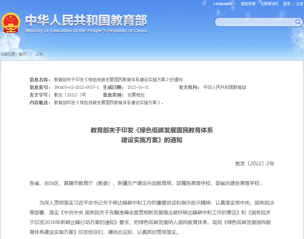 教育部在《绿色低碳发展国民教育体系建设实施方案》中提到,“将绿色低碳发展融入校园建设”。鼓励各地校园完善能源工作体系;在新校区建设和既有校区改造中优先采用节能减排新技术产品和服务。