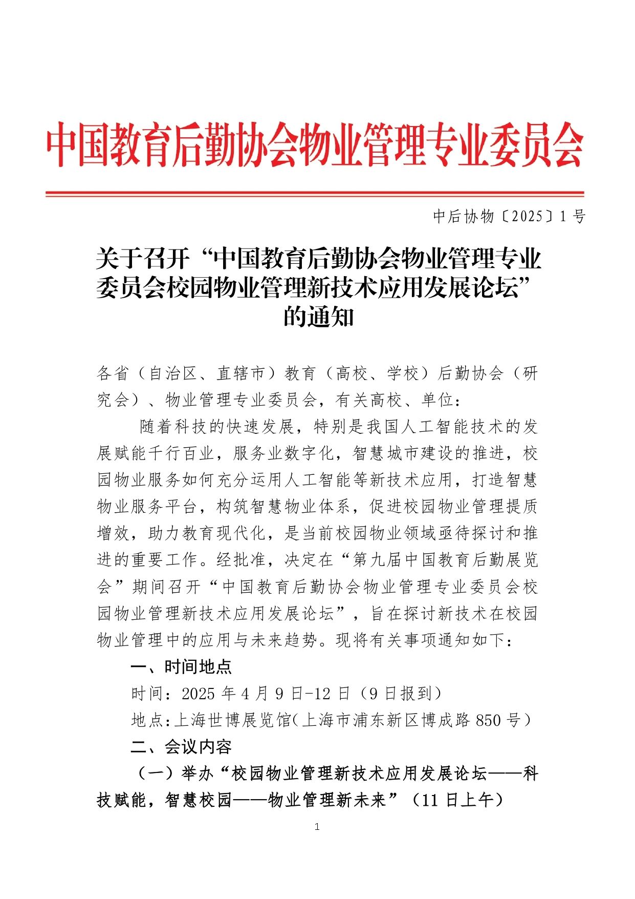 随着科技的快速发展,特别是我国人工智能技术的发展赋能千行百业,服务业数字化,智慧城市建设的推进,校园物业服务如何充分运用人工智能等新技术应用,打造智慧物业服务平台,构筑智慧物业体系,促进校园物业管理提质增效,助力教育现代化,是当前校园物业领域亟待探讨和推进的重要工作。经批准,决定在“第九届中国金年会览会”期间召开“中国教育后勤协会物业管理专业委员会校园物业管理新技术应用发展论坛”,旨在探讨新技术在校园物业管理中的应用与未来趋势。现将有关事项通知如下: