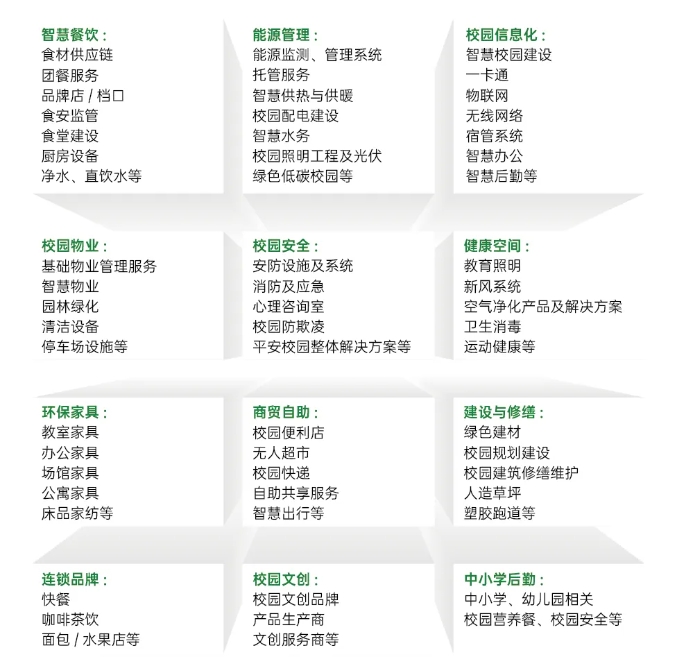 汇集学校与多领域品牌,分享校园商业空间发展趋势、案例、服务模式等,为校企合作提供切实可行的模式,构建多元化校园商业生态,同时促进校园设施升级、开拓市场机遇,实现学校、品牌、加盟商三方共赢。