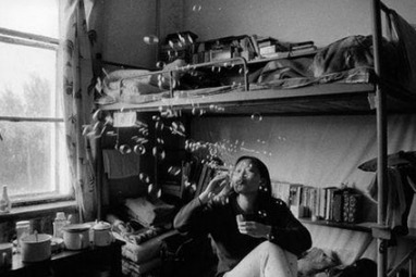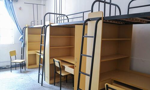 80年代的大学宿舍通常八人一间。寝室南北相对,过道东西贯通,公用的盥洗间和厕所居于中央。与过道相连的双开木门正好对着寝室的大玻璃窗,通风采光,各得其所。白色吊顶和石灰墙壁,水泥地面,装饰简略但也干净整洁;床靠墙而立,小木桌两相并排并列中央,桌子上方正对两根日光灯管。八张小桌上方摆放着日常生活用品。倚墙而立的床底塞满了各自的衣箱。总之,寝室的空间利用率达到了极致,尽管拥挤,但也井井有条。