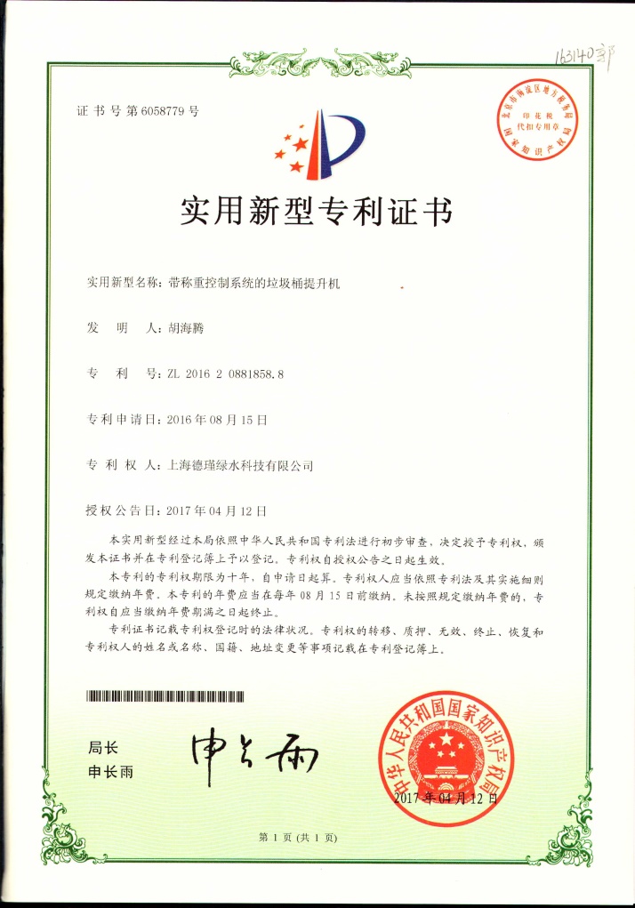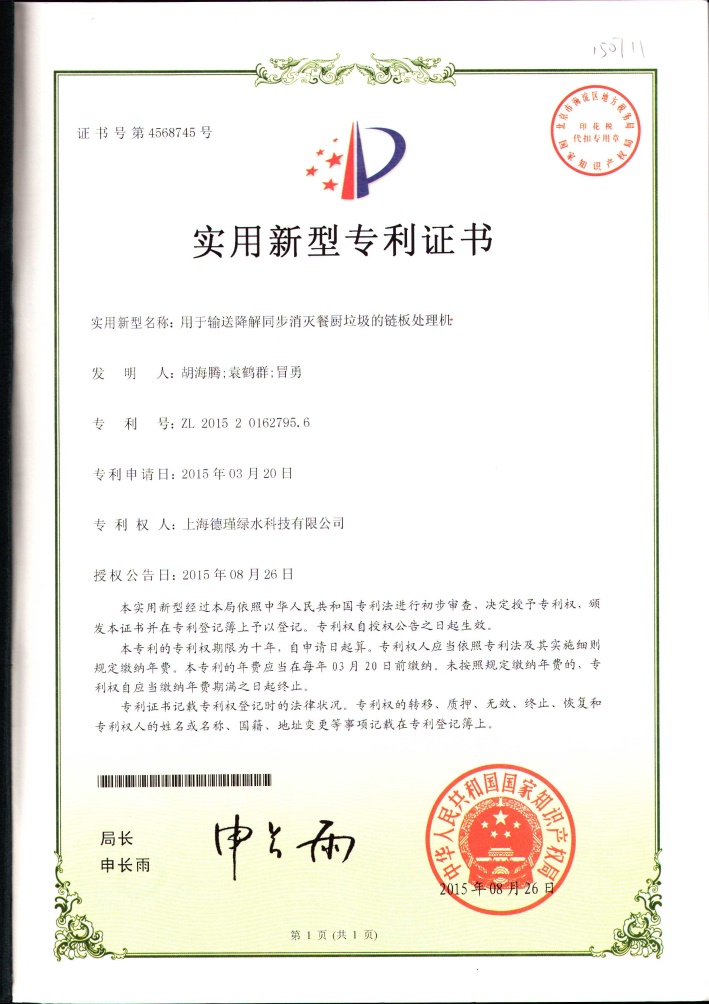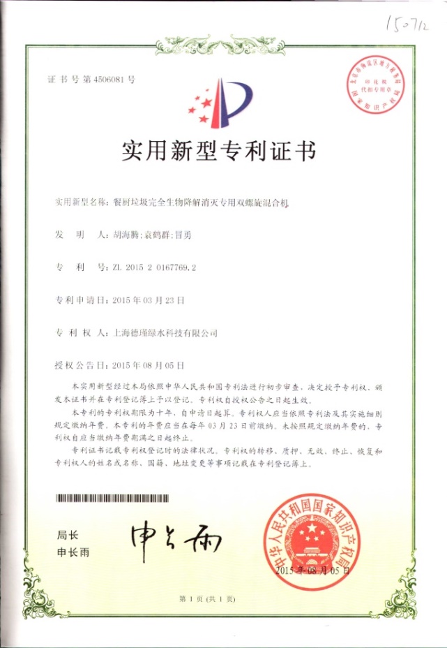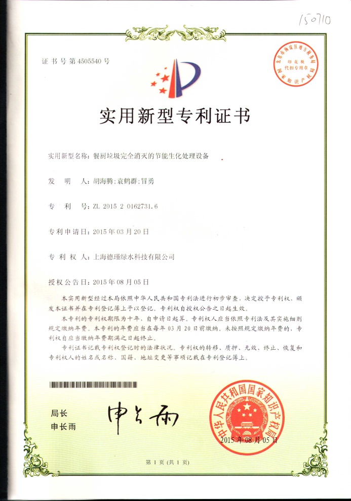 公司严格遵循ISO9001质量管理体系,生产的“白鸥”消灭型餐厨垃圾生物处理机,经上海市质量监督检验技术研究院检测,产品性能优于《有机垃圾生物处理机》CJ/T227-2018行业标准,垃圾减重率超过99.3%。凭借多项国家专利技术,目前已通过多家国家级权威检测机构检测认证: