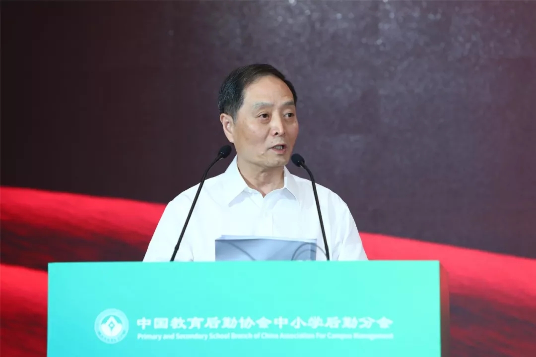 王云霏同志代表教育部发展规划司对中国教育后勤协会中小学后勤分会第二次会员代表大会的召开表示热烈祝贺,对中小学后勤分会五年来的工作给予充分肯定,向第一届理事会同志们的辛勤付出表示感谢。他希望中小学后勤分会在下一步工作中以习近平新时代中国特色社会主义思想为指导,牢固树立后勤服务育人的理念。在对学生的学、食、住、行等服务工作中实现后勤管理育人、服务育人、环境育人,助力打造安全、绿色、友好的学生学习生活环境,推动教育后勤社会化向后勤现代化的转型,建设更加绿色、开放、智慧的现代化中小学后勤保障体系。