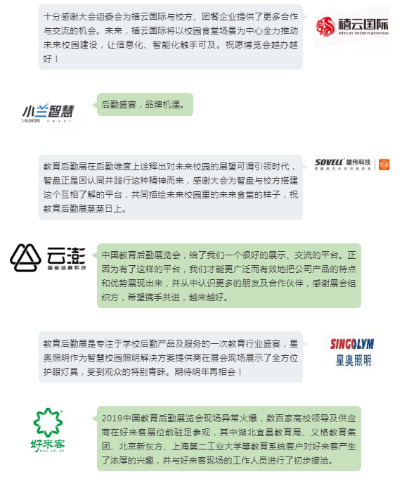 展会携微信支付、海尔、松下、禧云、瑞幸、哈啰、浩泽、雄伟、复旦后勤、小兰智慧等品牌参展,树立教育后勤管理“风向标”,全力铸造教育后勤管理品牌展会。